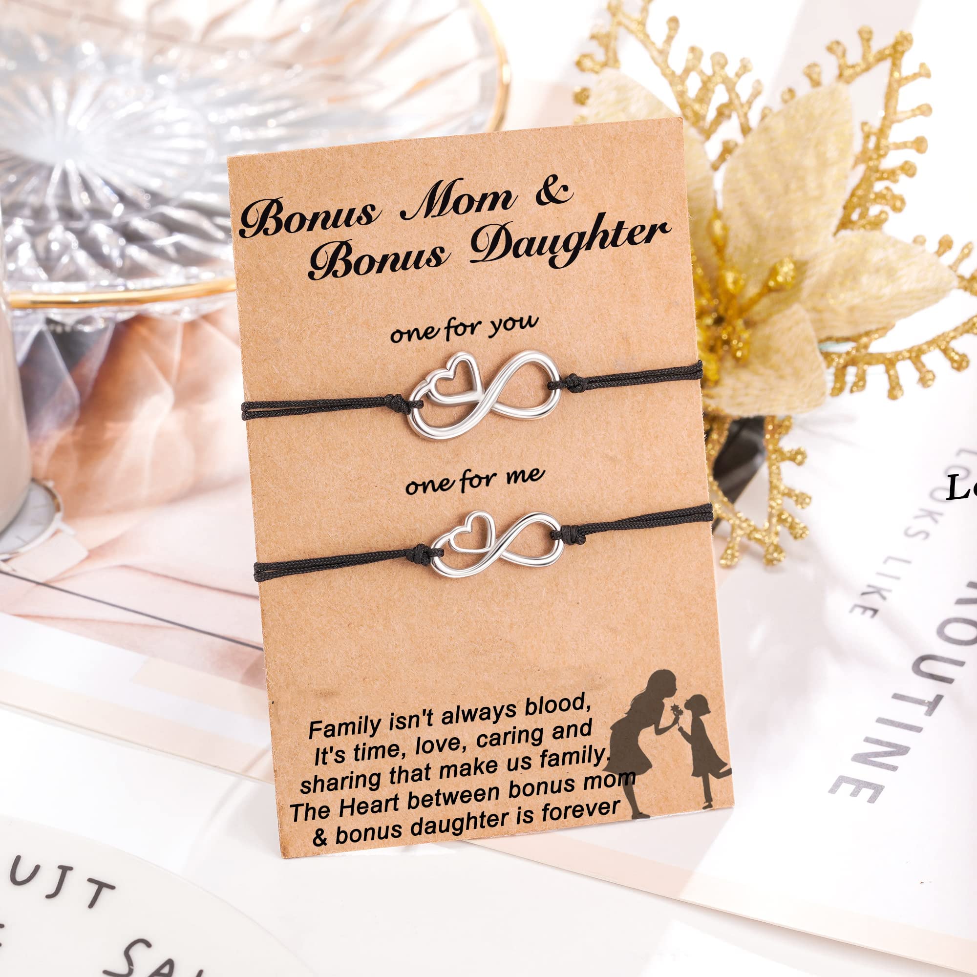 - IMPORTED MATERIAL -- Made of High-Quality Smooth Korea Black Cord and Metal Beaded, This handmade bracelets set can be shared with your Bonus Mom / Bonus Daughter